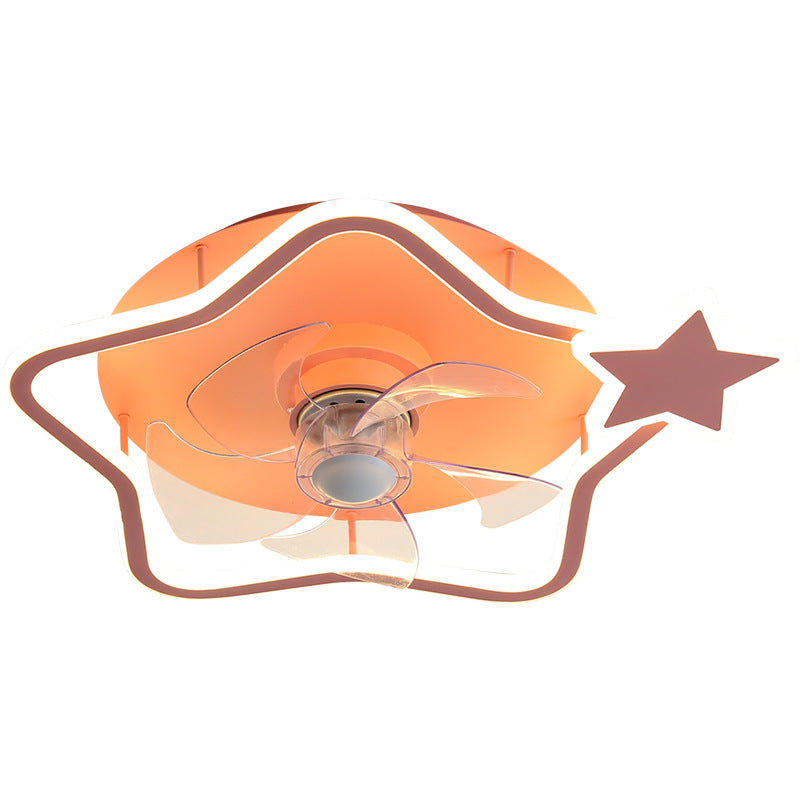 Loop Shaped Aluminum Fan Lighting Cartoon Pink Semi Flush Mounted Ceiling LED Light with Remote Control