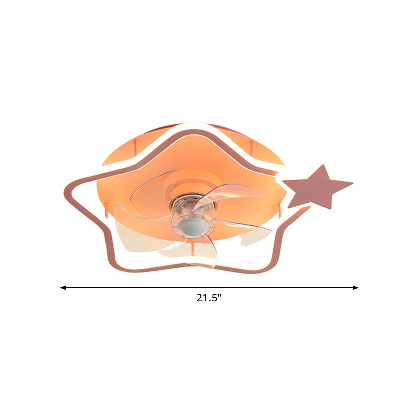Loop Shaped Aluminum Fan Lighting Cartoon Pink Semi Flush Mounted Ceiling LED Light with Remote Control Clearhalo 'Ceiling Fans with Lights' 'Ceiling Fans' 'Kids Ceiling Fans' 'Kids' 'Modern Ceiling Fans' 'Modern' Lighting' 2477992