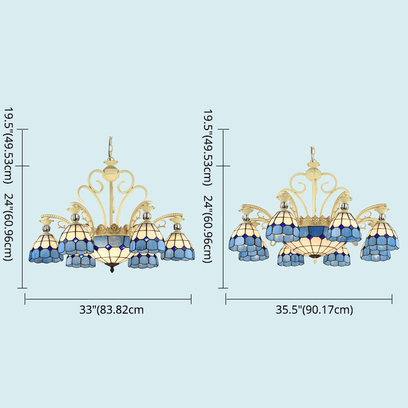 Lattice Motif Tiffany Chandelier with Stained Glass Shade Living Room Restaurant Hanging Pendant Lamp with Crystal Ball Embellishment 6 Blue Clearhalo 'Ceiling Lights' 'Chandeliers' 'Close To Ceiling Lights' 'Industrial' 'Middle Century Chandeliers' 'Pendant Lights' 'Tiffany Chandeliers' 'Tiffany close to ceiling' 'Tiffany' Lighting' 2600260