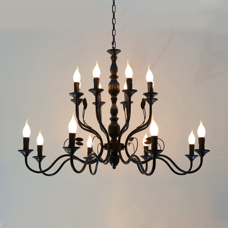 Traditional Curvy Arm Hanging Chandelier 10/12/16 Bulbs Metal Suspension Pendant Lamp in Black for Living Room