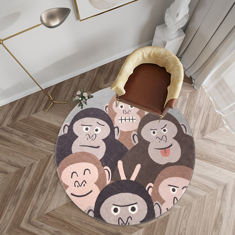 Casual Kids Rug in Green and Blue Animal Lion Panda Penguin Pattern Rug Wool Washable Carpet for Children's Room