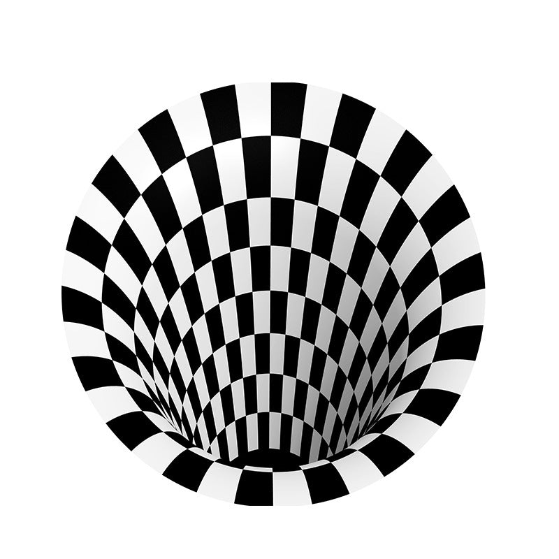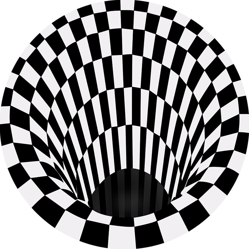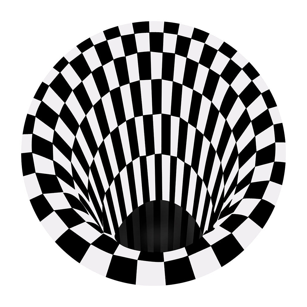 Classic 3D Illusion Trap Rug Black and White Modern Carpet Polypropylene Anti-Slip Washable Stain Resistant Rug for Bedroom