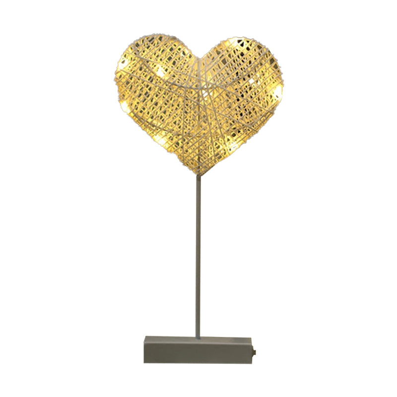 Artistic Geometric LED Table Light Rattan Bedside Battery Nightstand Lamp in Beige