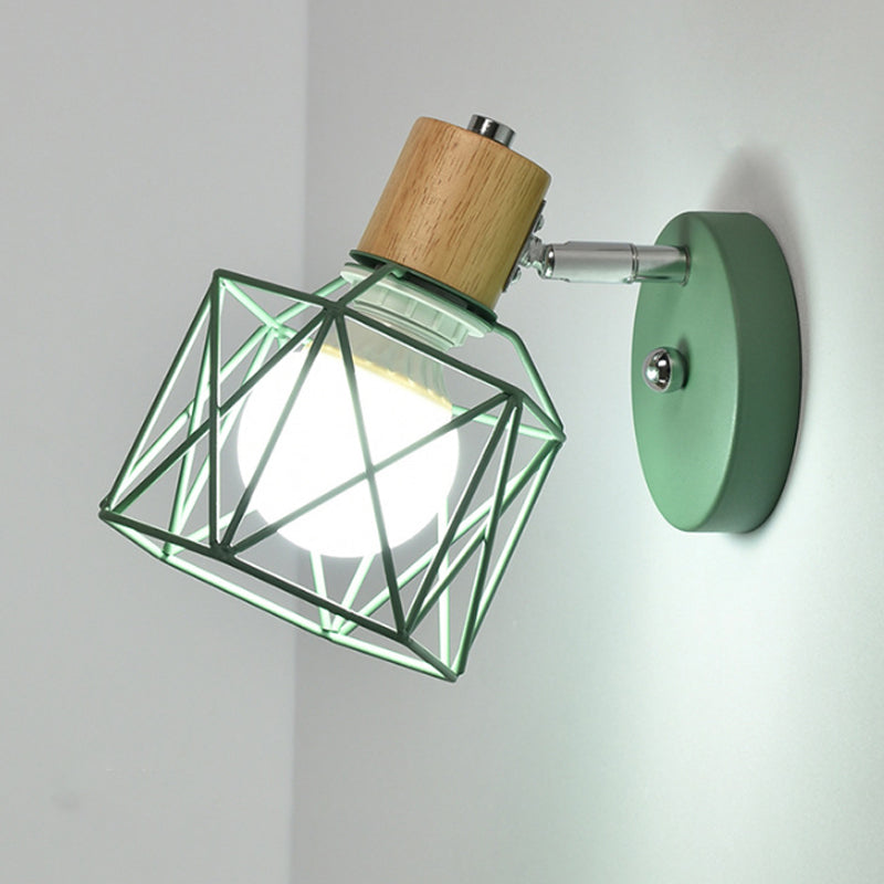 Polygon Cage/Antler Bedside Wall Lamp Metallic 1 Head Nordic Adjustable Wall Light Fixture in Black/Blue/White Clearhalo 'Wall Lamps & Sconces' 'Wall Lights' Lighting' 1912256