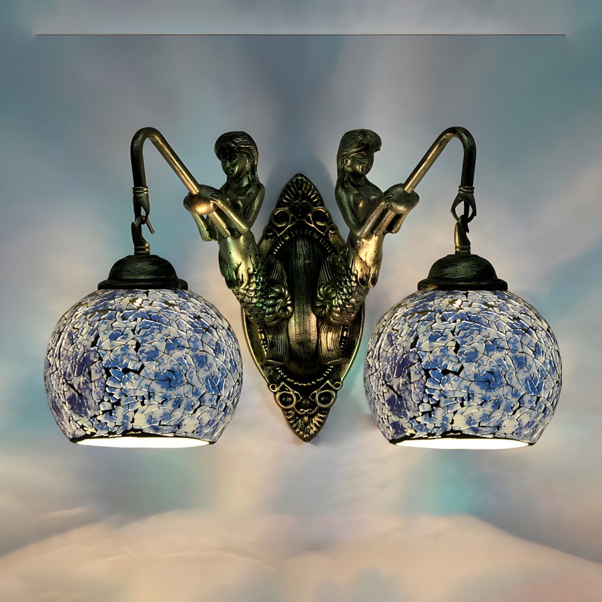 Mermaid Wall Lighting Idea 2 Lights Hand Cut Glass Baroque Sconce Light in White/Yellow/Orange for Living Room