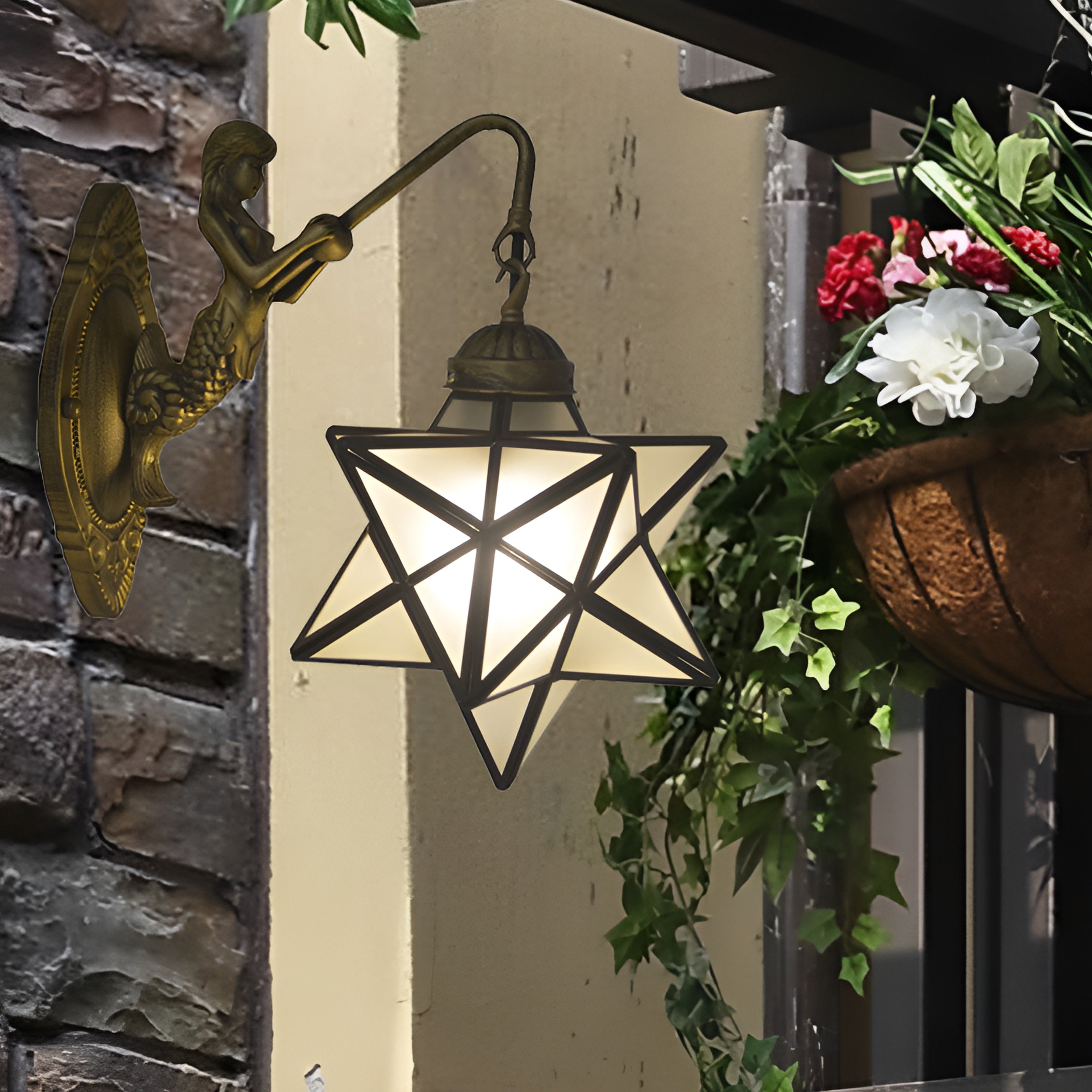 White Glass Star Sconce Lighting Tiffany 1 Head Antique Brass Wall Mount Light with Mermaid Backplate