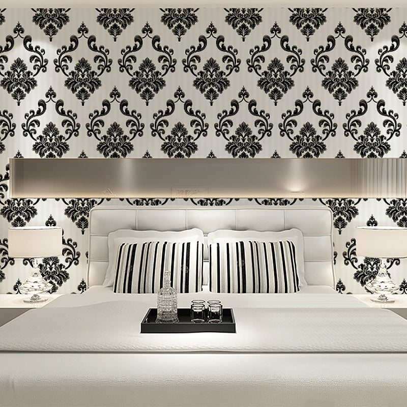 Antique Jacquard Wallpaper Roll for Accent Wall 33' x 20.5" Wall Covering in Dark Color Black-White Clearhalo 'Vintage wall decor' 'Vintage' 'Wallpaper' Wall Decor' 1212610
