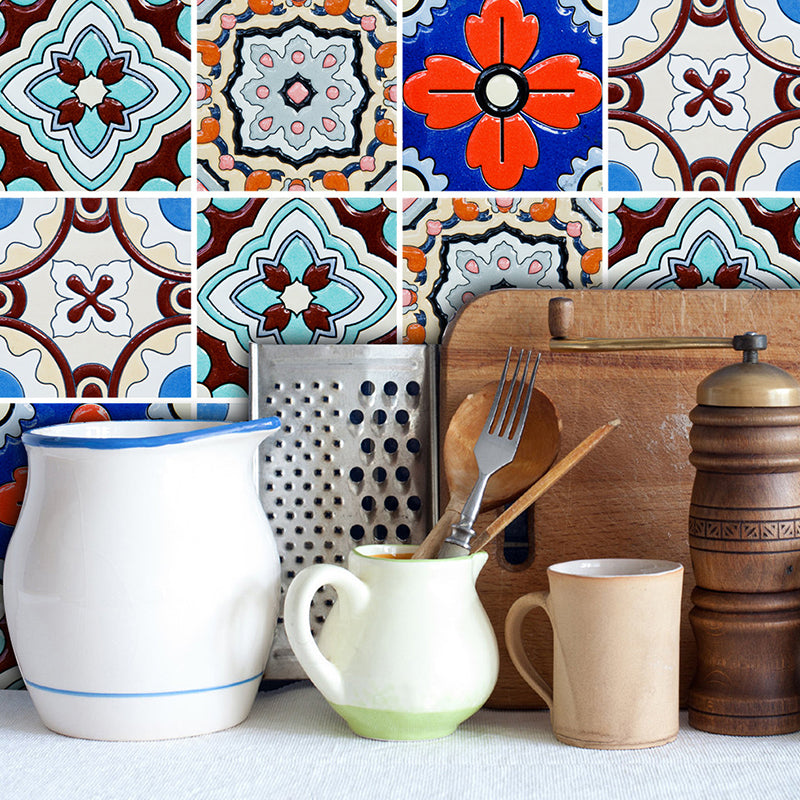 Bohemia Quatrefoil Wallpaper Panel 50 Pcs Blue Flower-Like Wall Decor, Peel and Stick Clearhalo 'Wall Decor' 'Wallpaper' 1921909