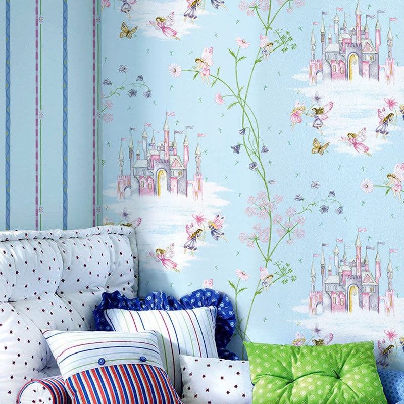 Castle and Flower Non-Pasted Wallpaper Roll, 33-foot x 20.5-inch, Pastel Color