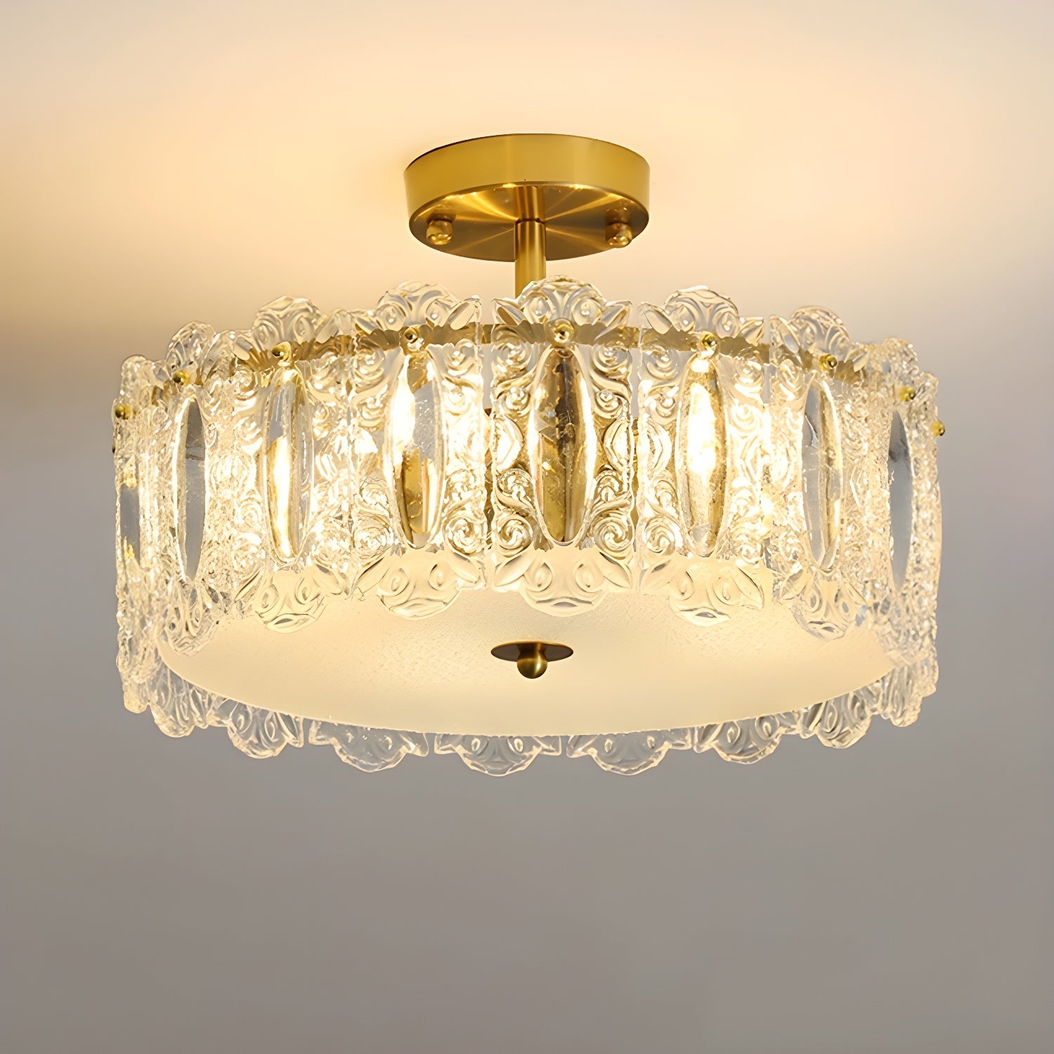 Modern Gold Cylinder Flush Mount Ceiling Light with Clear Crystal Shade