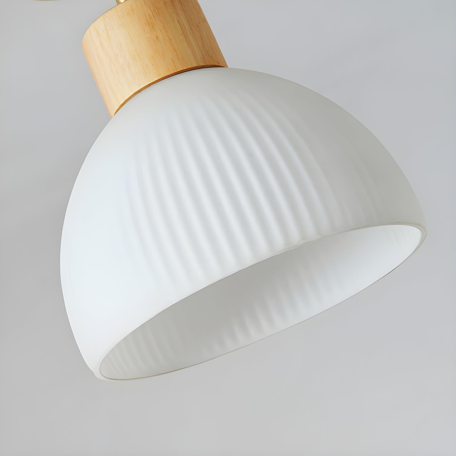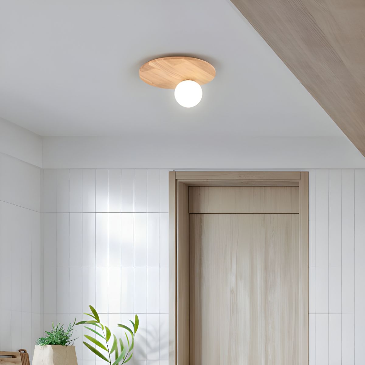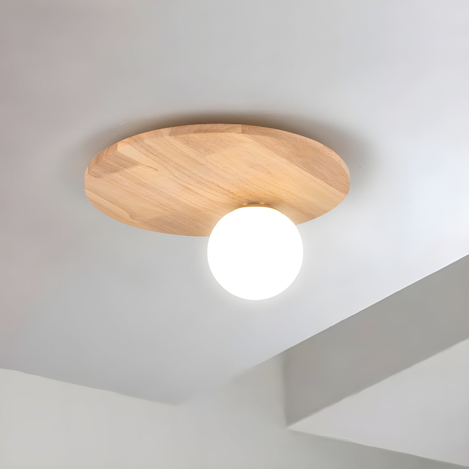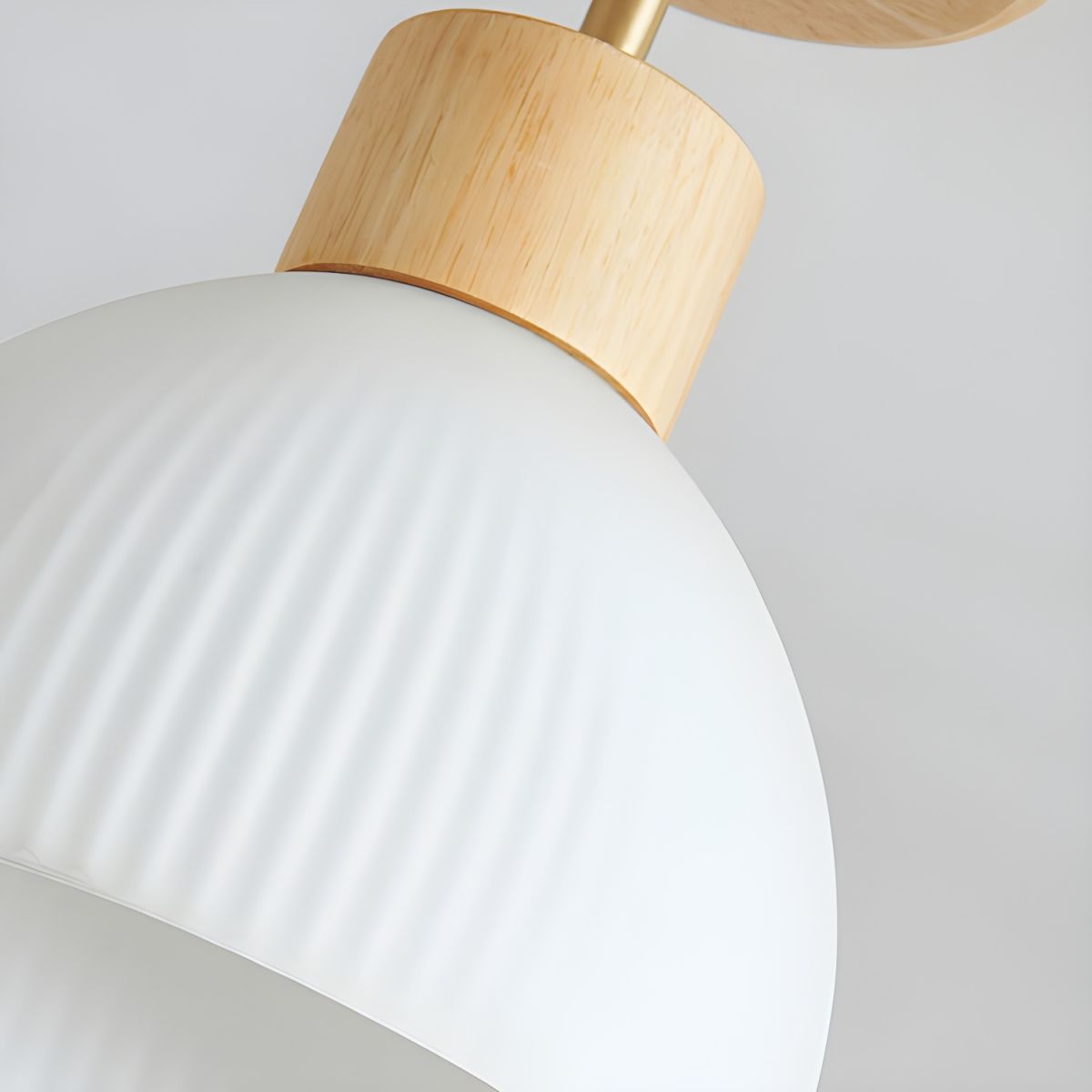 Natural Wood Semi-Flush Mount Ceiling Light with White Glass Bowl Shade