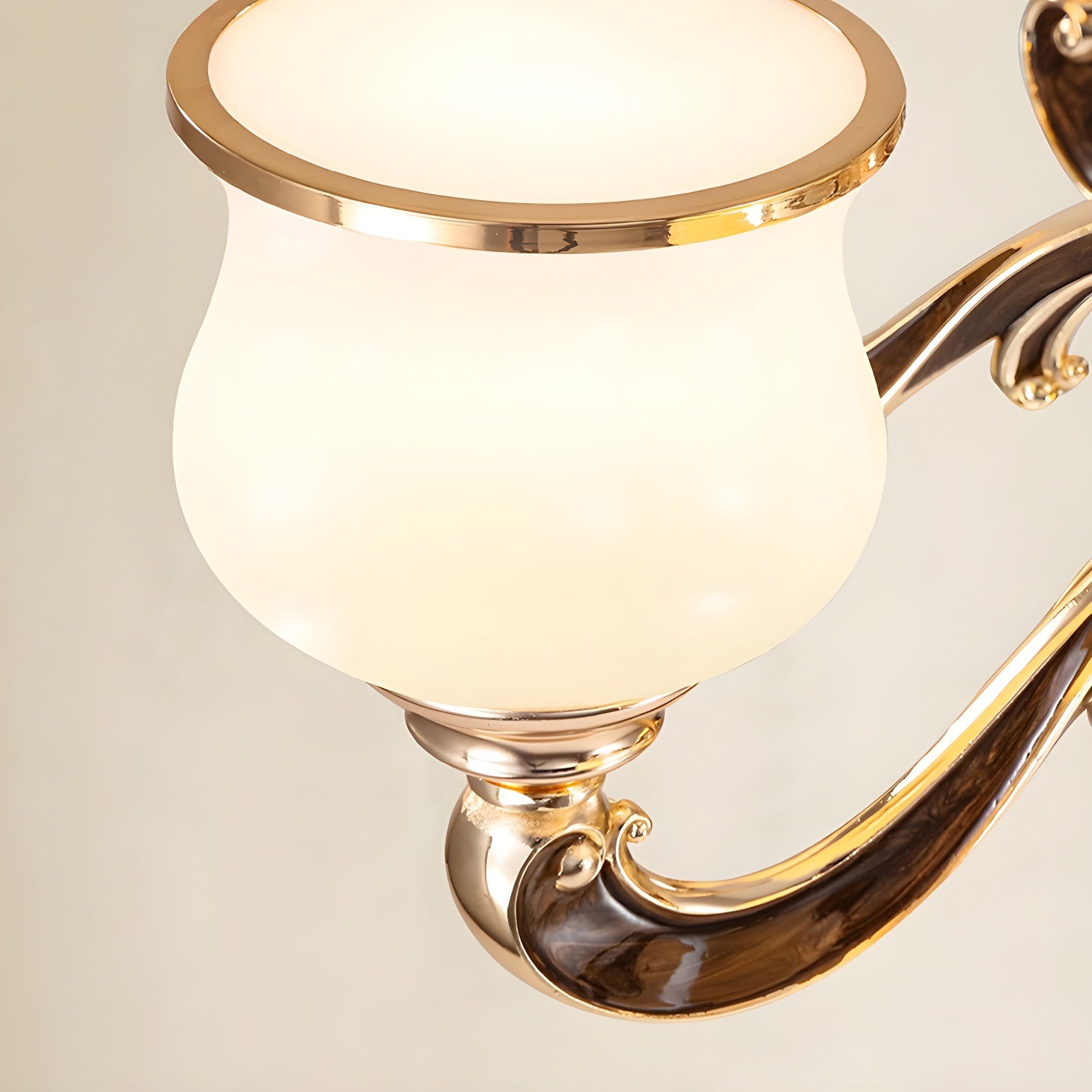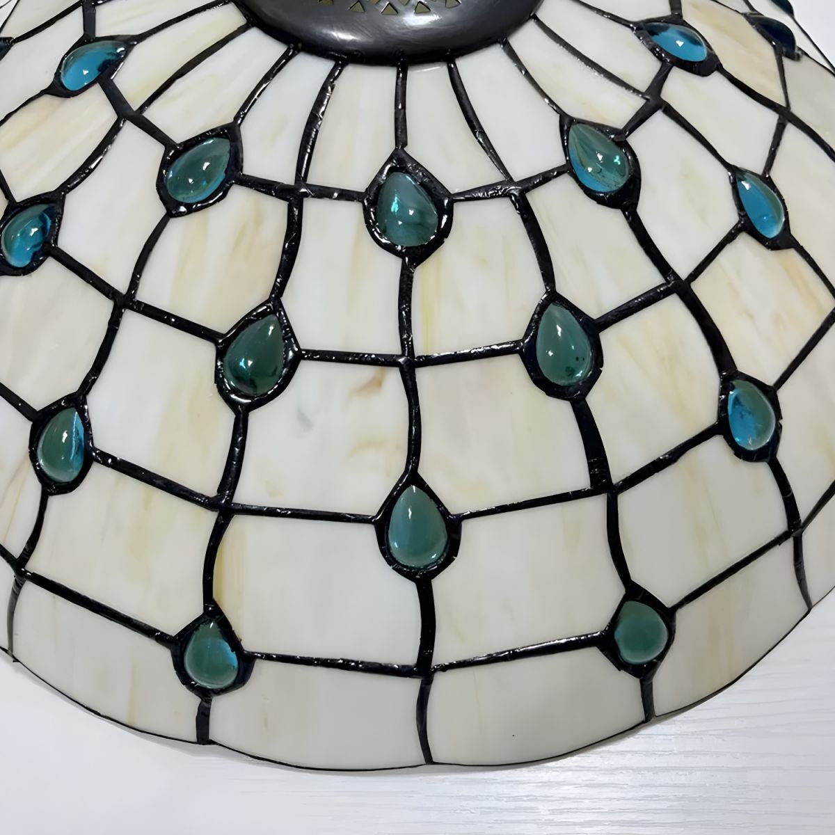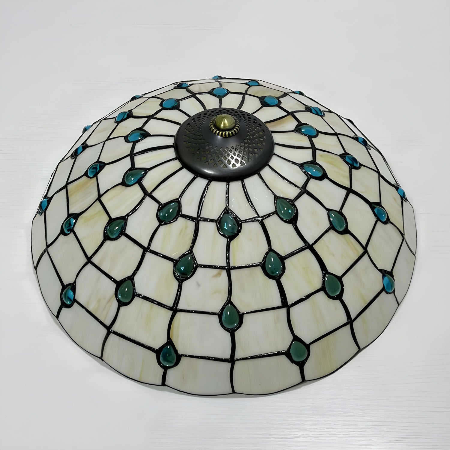 Tiffany Style Metal Flush Mount Ceiling Light with White Glass Shade
