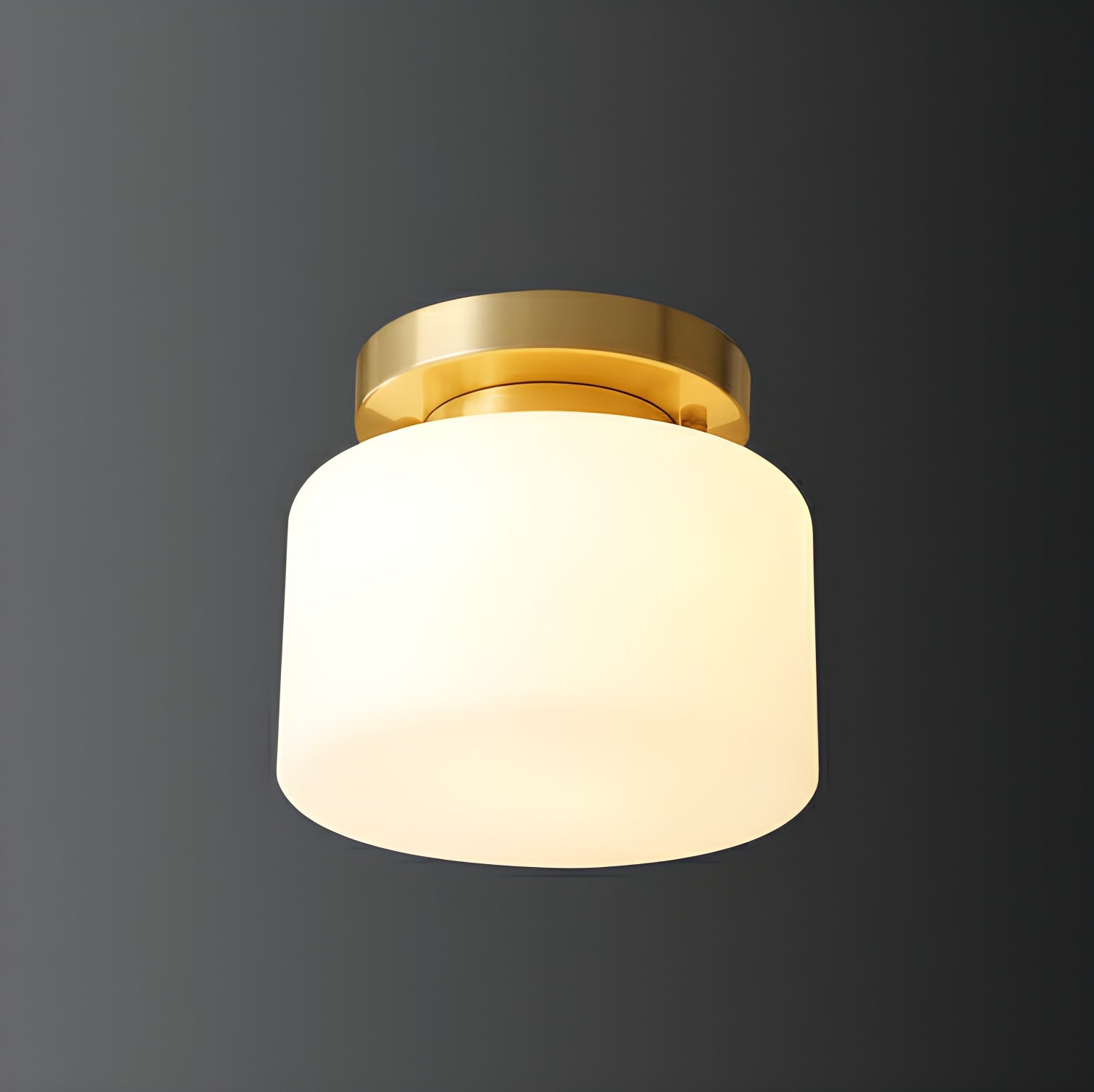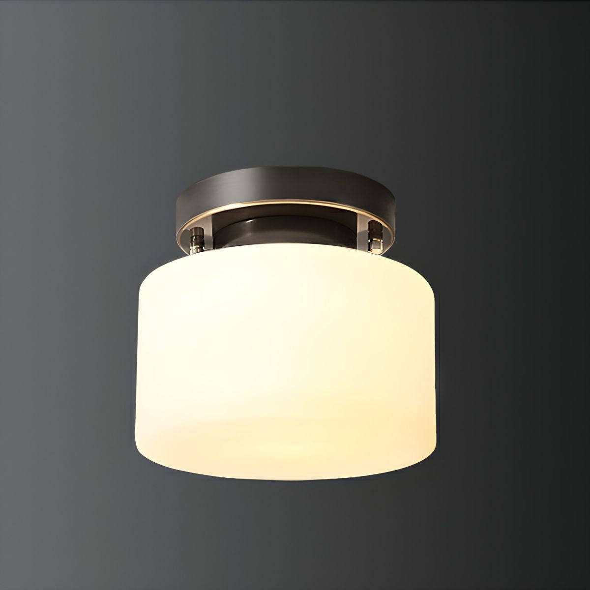 White Glass Cylinder Semi-Flush Mount Ceiling Light for Modern Home with Upward Shade Direction