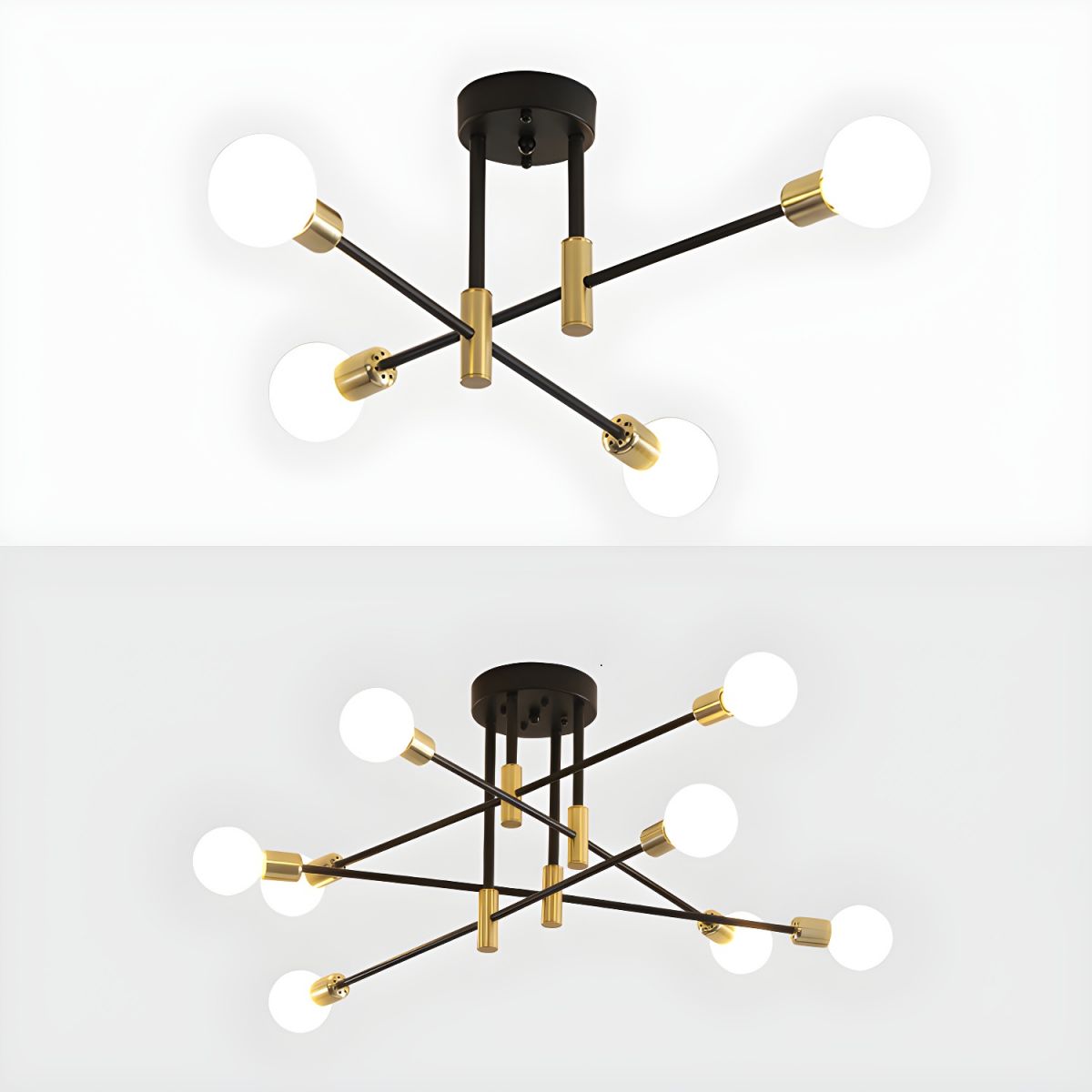 Modern Gold Geometric Semi-Flush Ceiling Light Clear Acrylic Shade, LED Bulbs