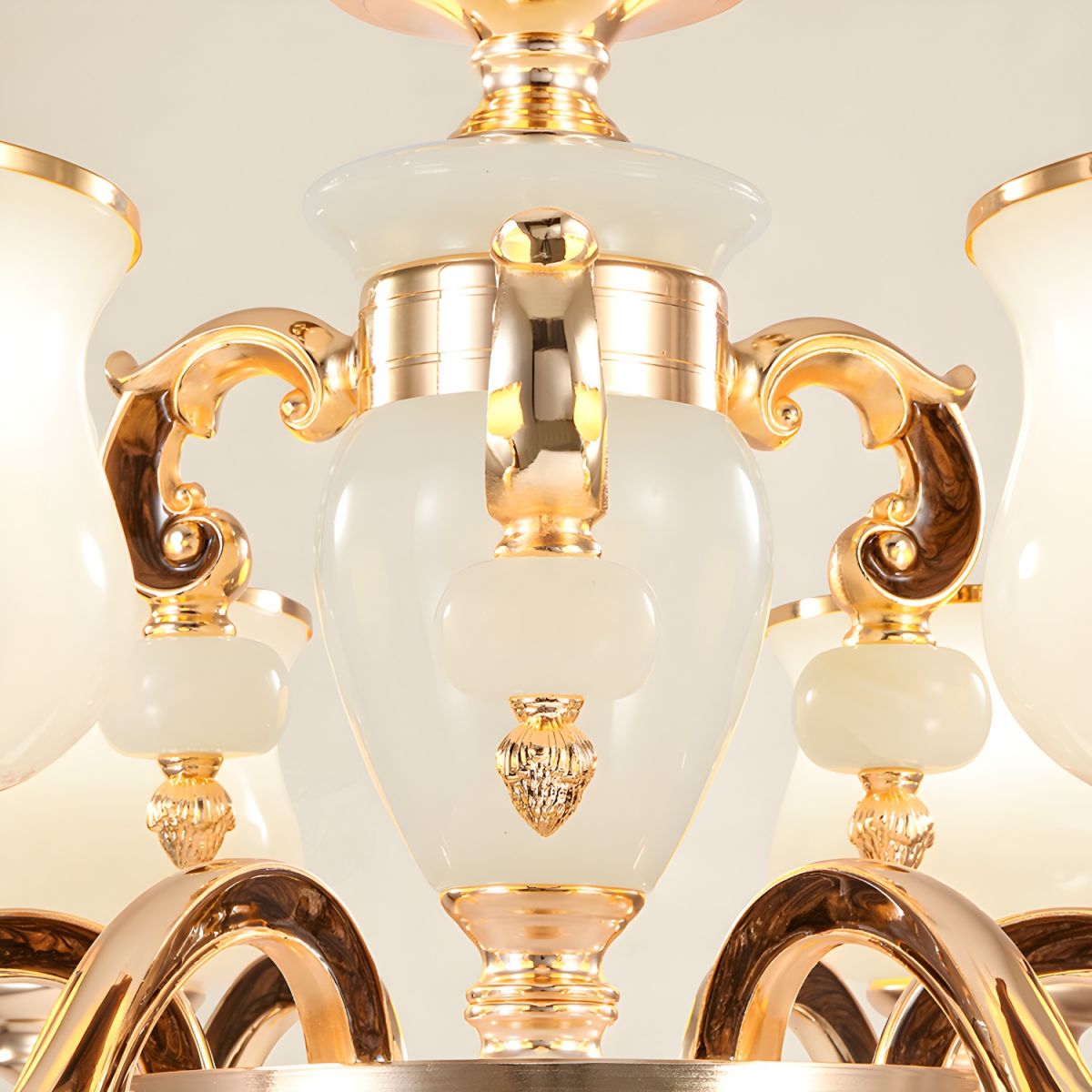 Modern Gold Dome Semi-Flush Mount Ceiling Light Elegant White Glass Shade