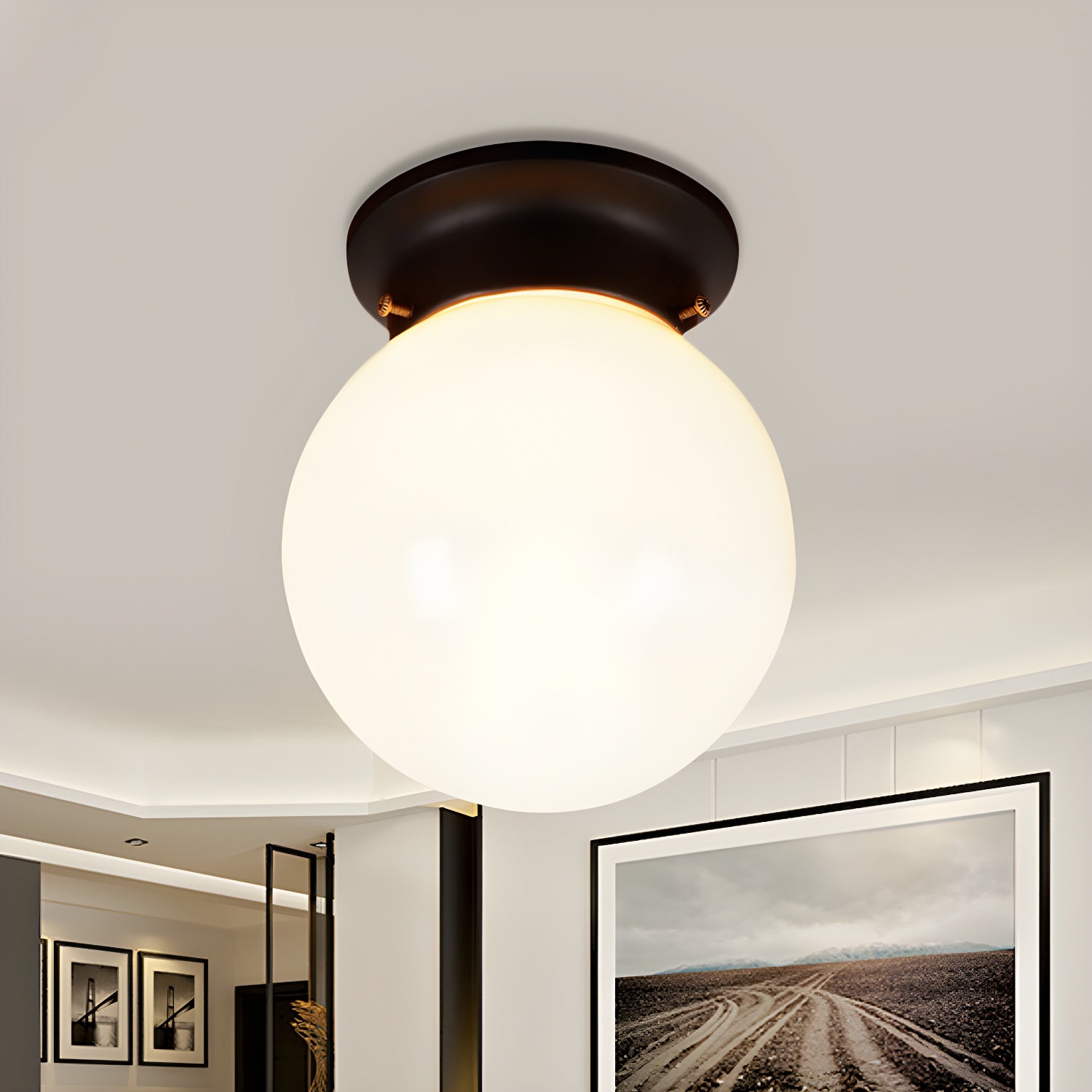 Modern Black Globe Flush Mount Ceiling Light with Glass Shade