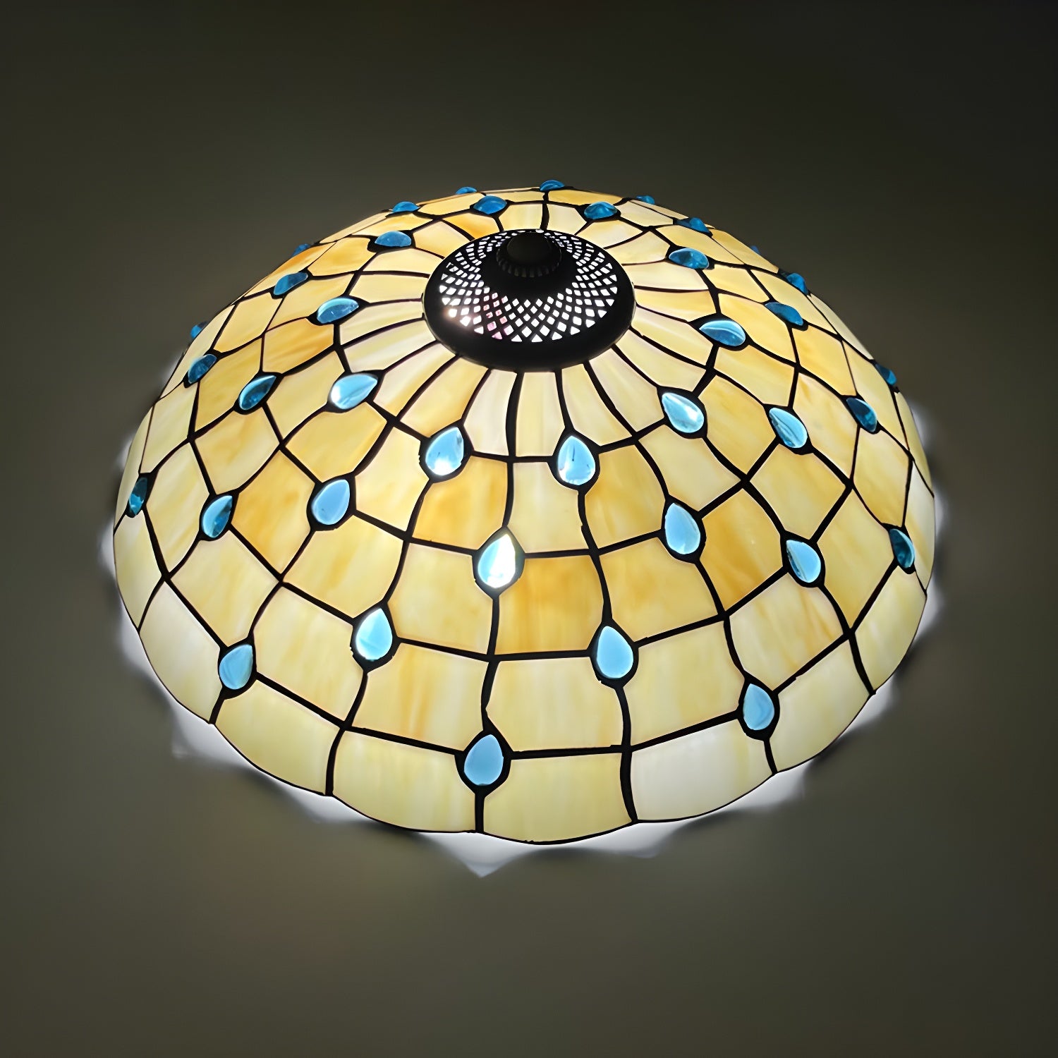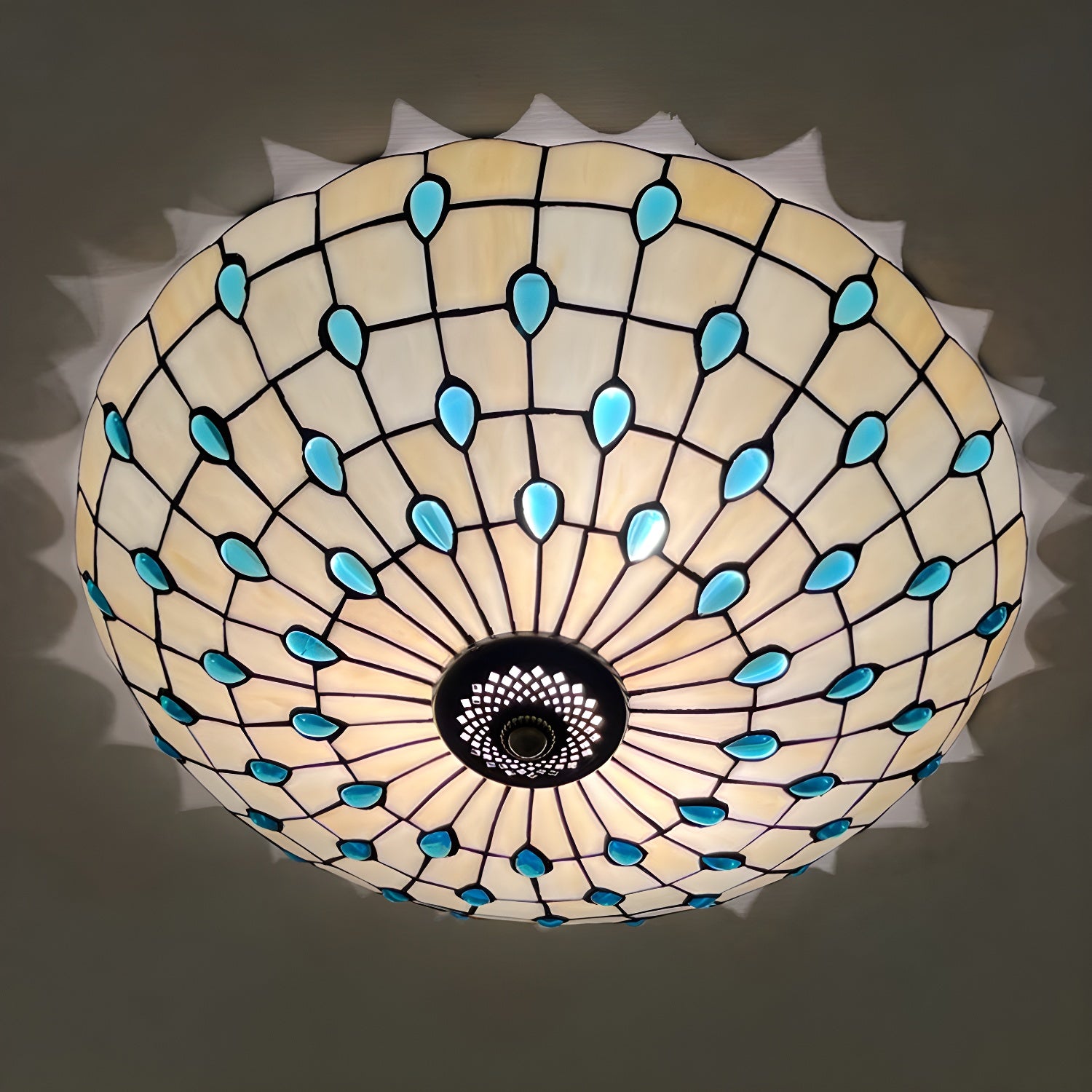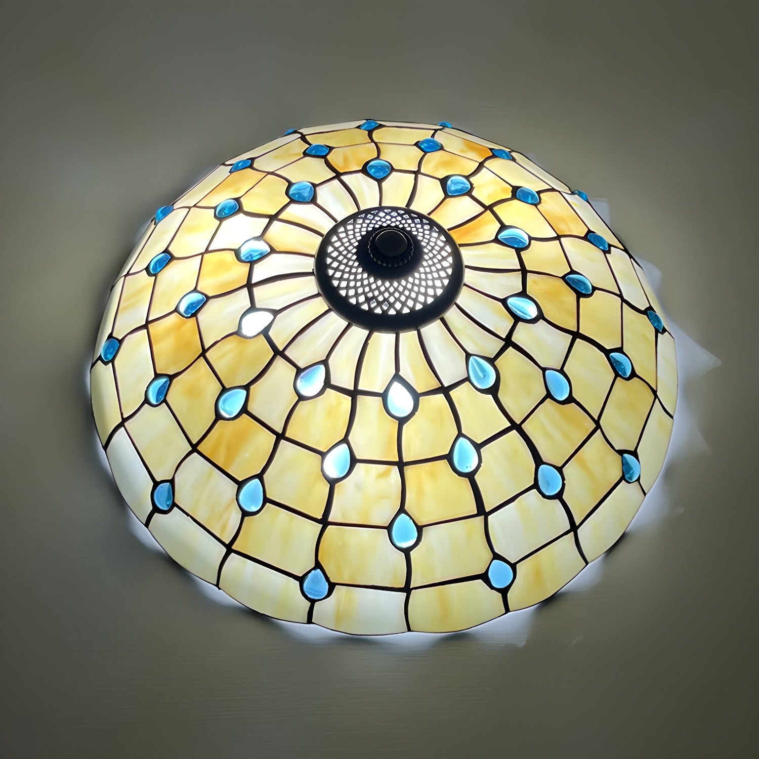 Stained Glass Bowl Flush Mount Light Tiffany Rustic Ceiling Lamp for Stair Living Room