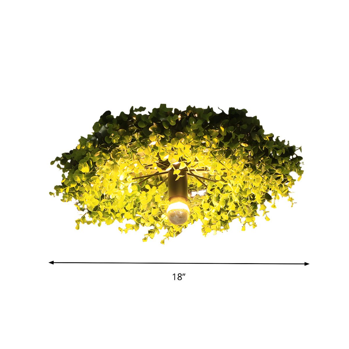 Green Wheel Flush Mount Lamp Antique Iron 1 Bulb Restaurant Plant Flush Ceiling Light Fixture with Bare Bulb