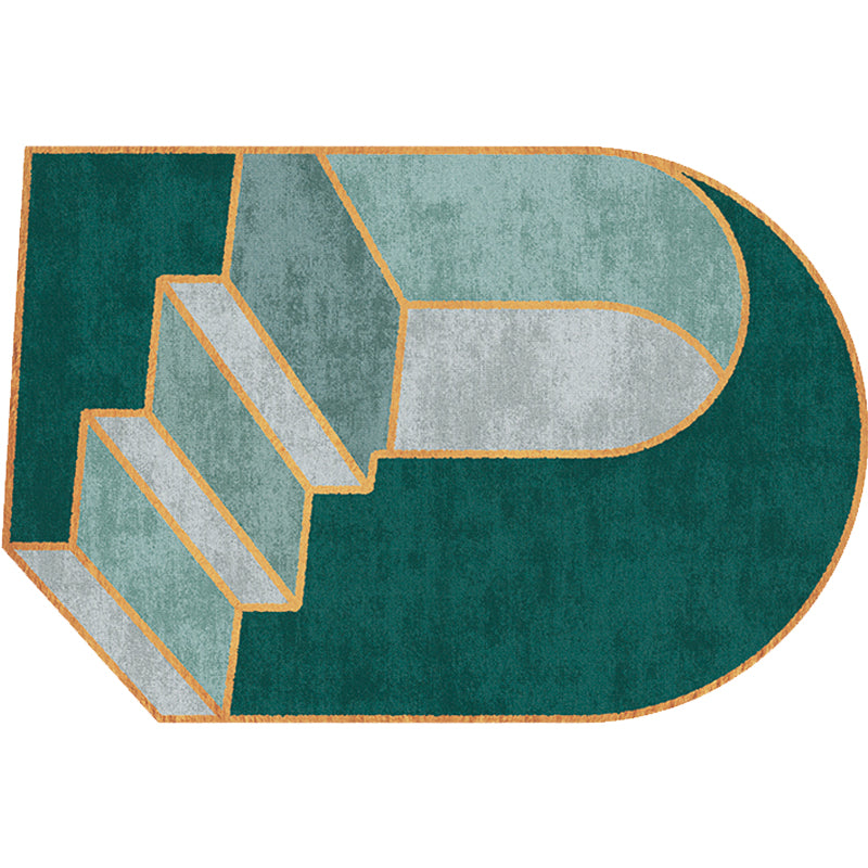 Grey and Green Irregular Rug Bedroom Novelty Color Block Stair Pattern Area Rug Polyester Pet Friendly Carpet