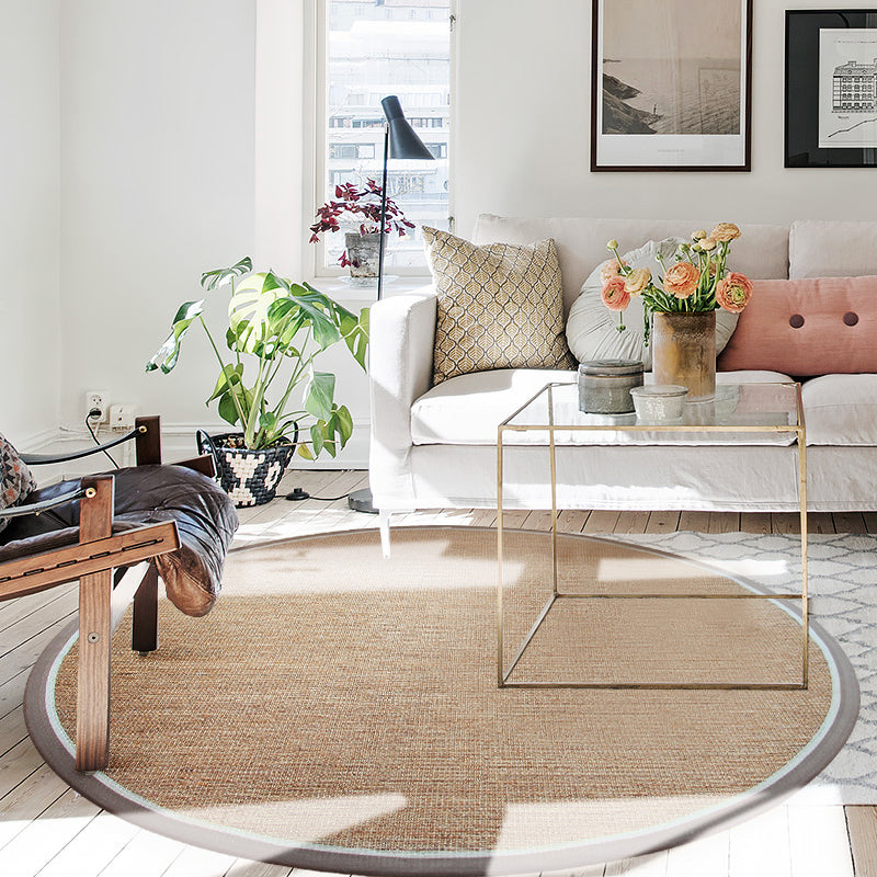 Lodge Style Plain Rug Brown Sisal Woven Carpet Anti-Slip Eco-Friendly Trimmed Rug for Home
