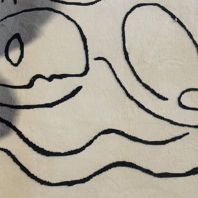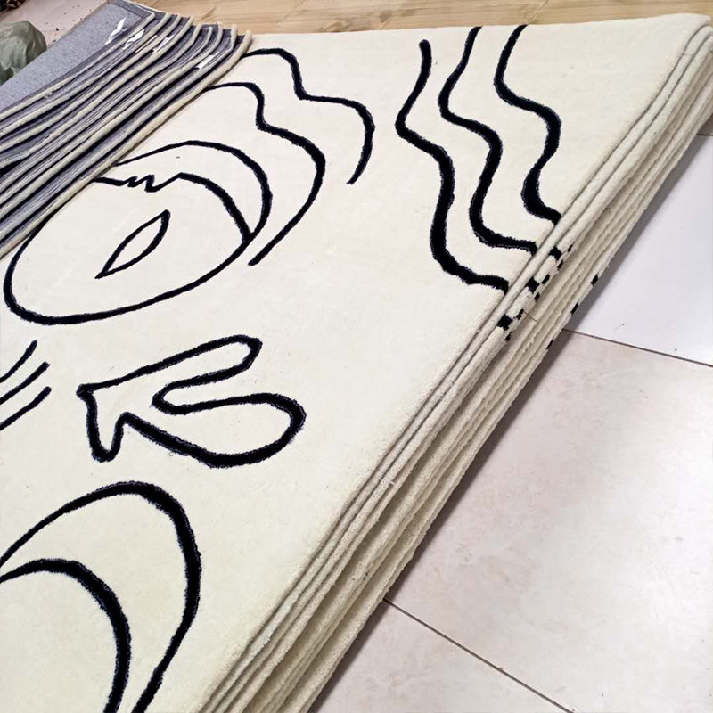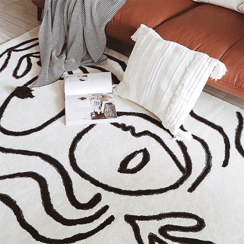 Minimalist Room Rug Black-White Line Art Woman Rug Faux Wool Non-Slip Backing Stain Resistant Pet Friendly Rug