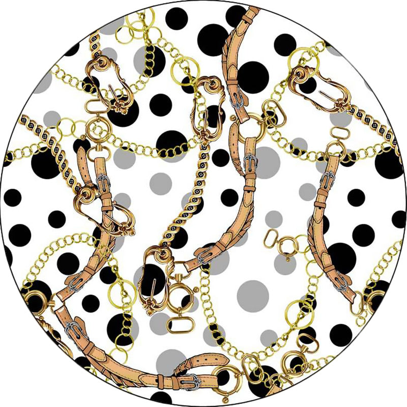 Modern Living Room Rug in White Belt Chain Dots Print Rug Polyester Stain-Resistant Area Rug