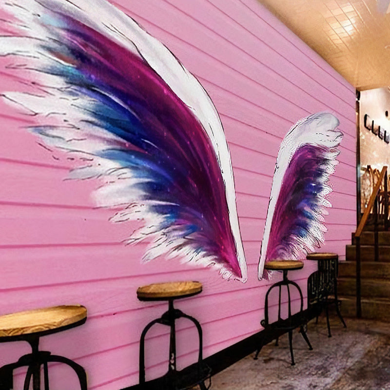 Illustration Wing and Stripe Mural Extra Large Wall Art for Girl's Bedroom, Personalized Size Available Clearhalo 'Wall Decor' 'Wall Mural' 962415