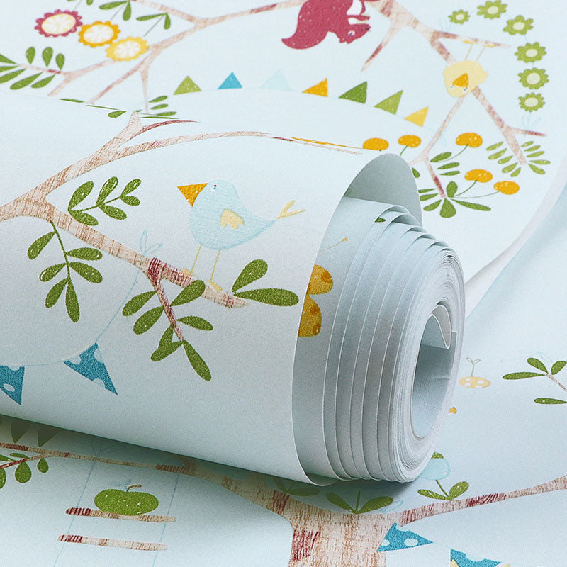 Decorative Non-Pasted Wallpaper Forest and Balloon Non-Woven Wall Decor in Pastel Color for Kid