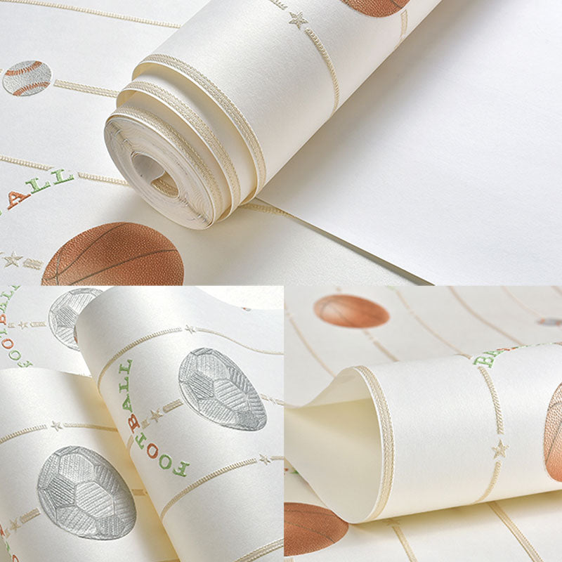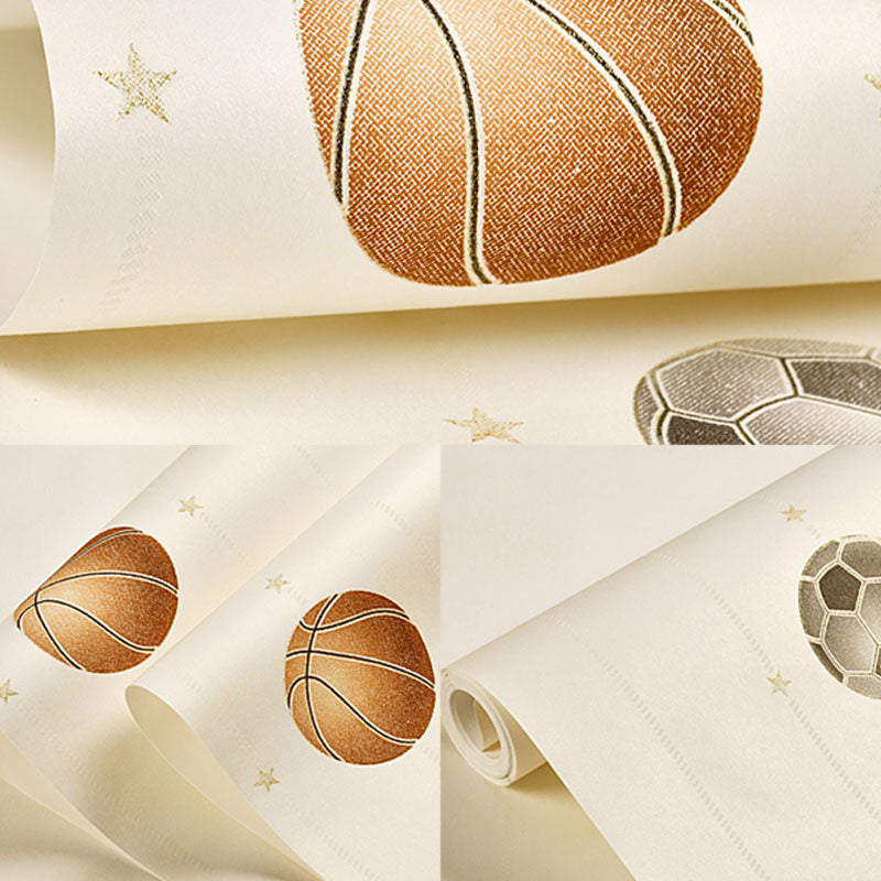Stain-Resistant Wallpaper Children's Bedroom Football and Stripe Wall Decor, 33' x 20.5"