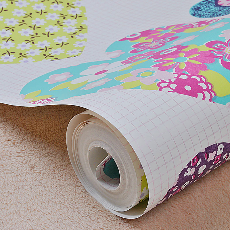Purple and Pink Heart Wallpaper Stain-Resistant Wall Covering for Children's Bedroom Decoration