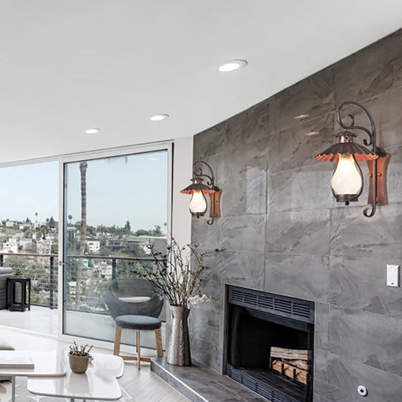 1 Bulb Lantern Wall Mounted Light Fixture Coastal Crackle Clear Glass Lighting in Clear