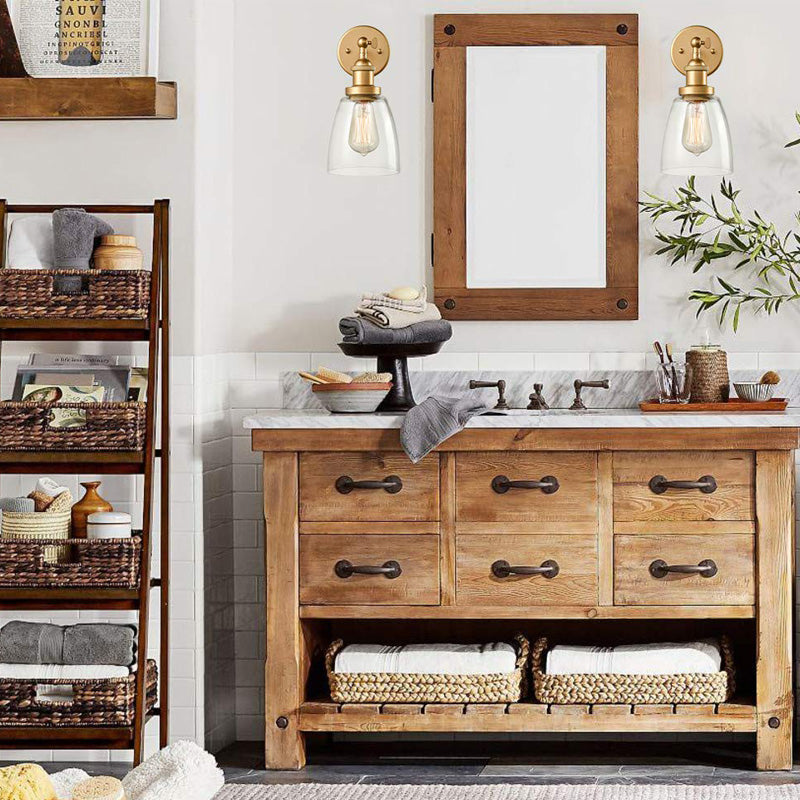 Clear Glass Brass Sconce Lighting Cone 1-Bulb Industrial Wall Lamp for Living Room