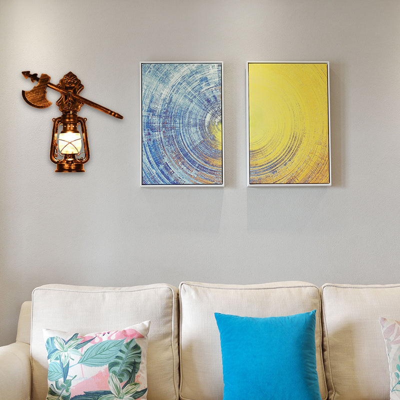 Clear Glass Rust Sconce Light Kerosene 1-Light Industrial Wall Lamp Fixture for Porch with Trumpet Clearhalo 'Art deco wall lights' 'Cast Iron' 'Glass' 'Industrial wall lights' 'Industrial' 'Middle century wall lights' 'Modern' 'Rustic wall lights' 'Tiffany' 'Traditional wall lights' 'Wall Lamps & Sconces' 'Wall Lights' Lighting' 467260