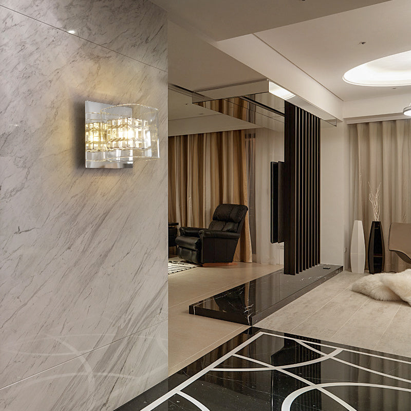 Clear Glass Squared Wall Sconce Contemporary 1 Light Wall Lamp with Inner Wire Shade in Chrome for Corridor Chrome Clearhalo 'Modern wall lights' 'Modern' 'Wall Lamps & Sconces' 'Wall Lights' Lighting' 155737