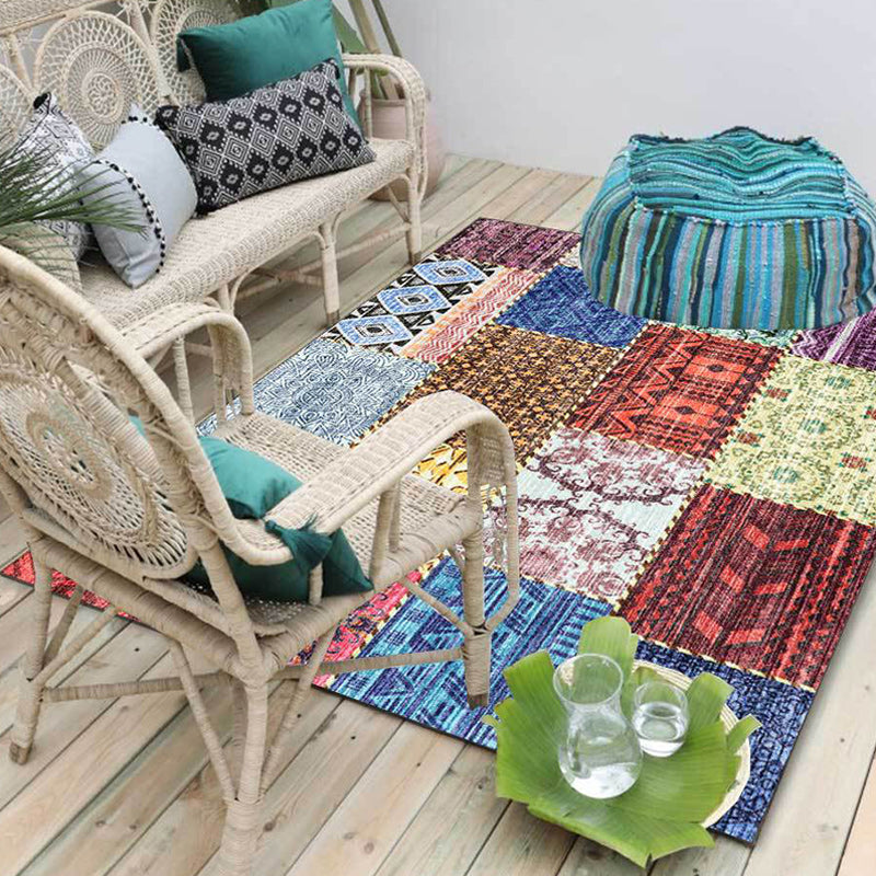 Multicolor Southwestern Rug Polyester Tribal Pattern Rug Washable Non-Slip Backing Area Rug for Living Room
