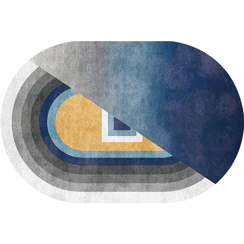 Novelty Living Room Rug in Blue and Grey Color Block Line Print Rug Polyester Non-Slip Area Rug