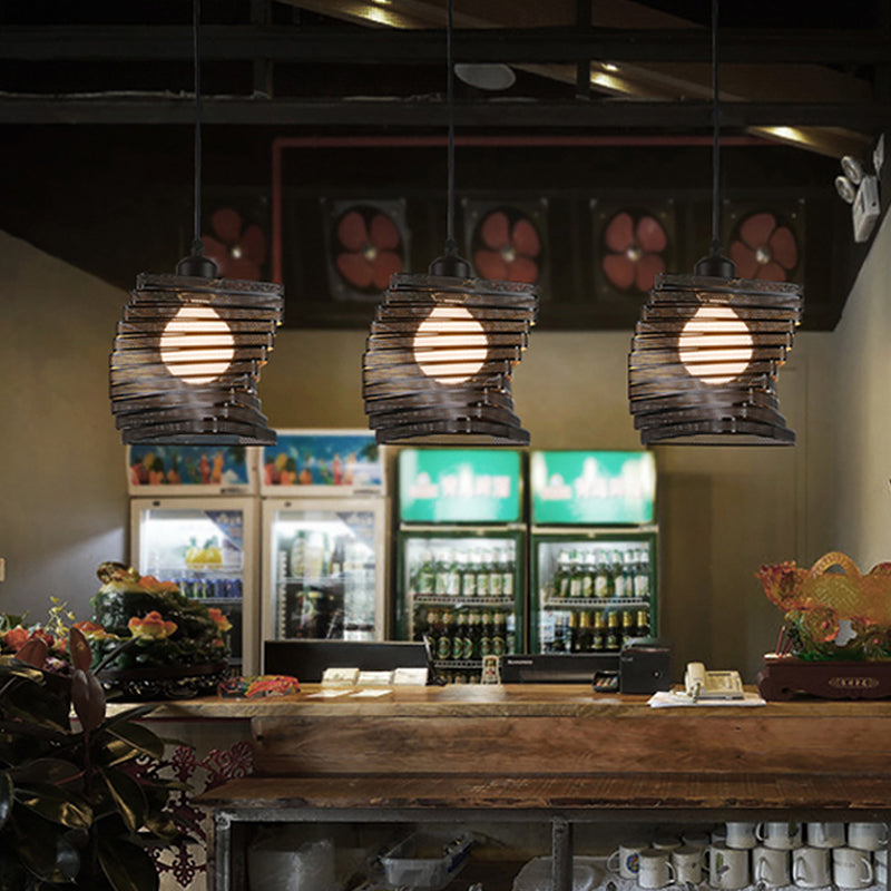 1 Bulb Twist Mesh Screen Pendant Light Industrial Black/White Metal Hanging Lamp with Triangle Shade