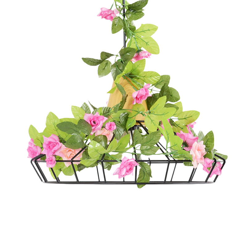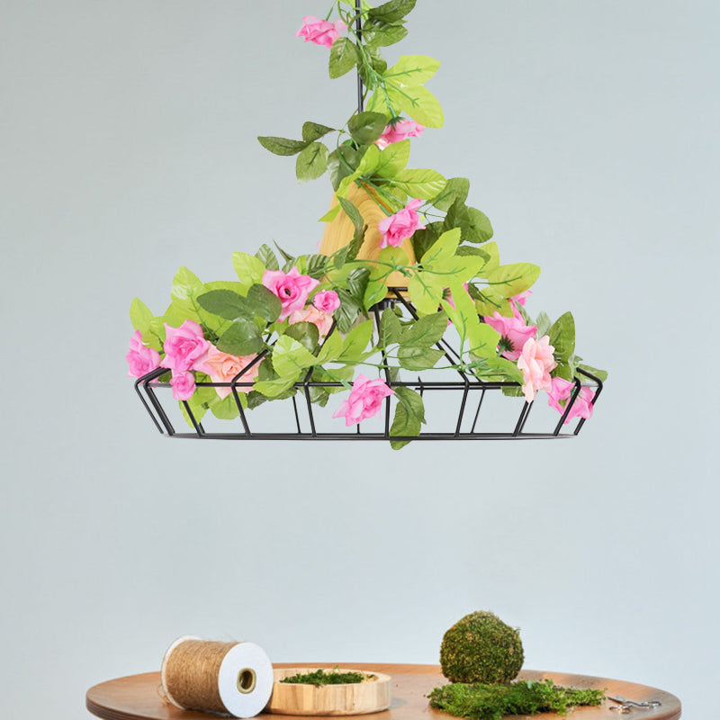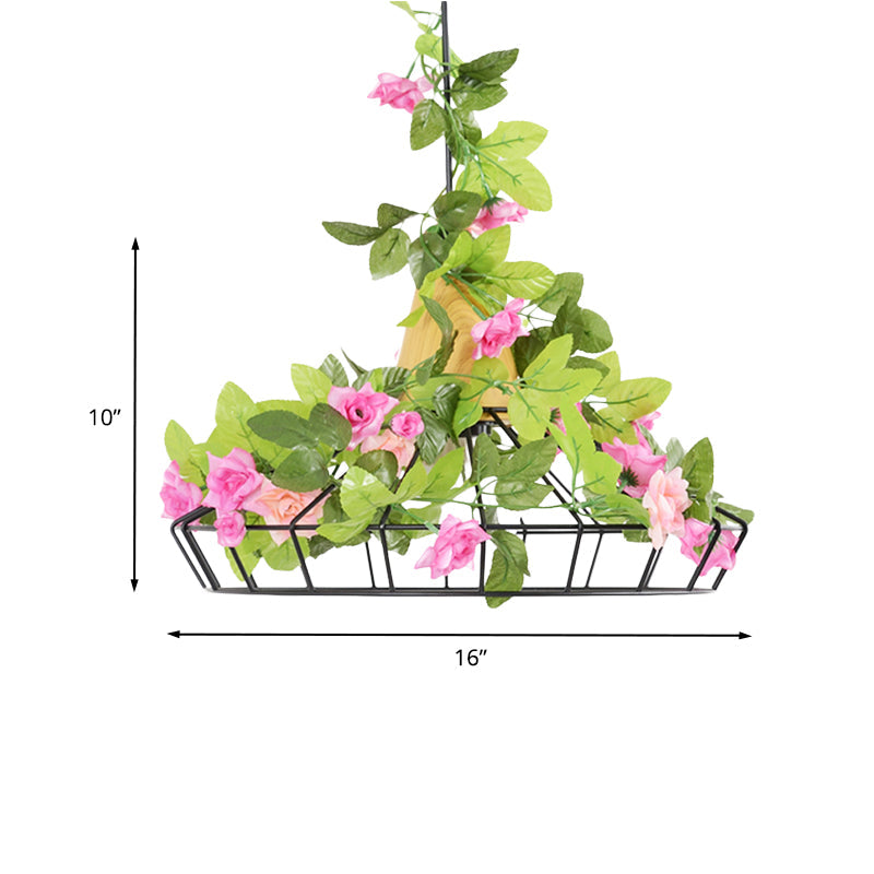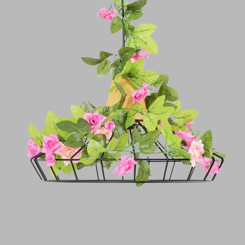 1 Head Diamond Cage Pendant Industrial Black Iron Plant Hanging Light Fixture with Wooden Top
