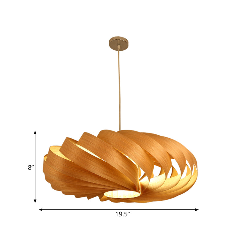 Asian 1 Head Hanging Pendant Light Wood Beige Twisted Lantern Ceiling Lamp over Dining Table