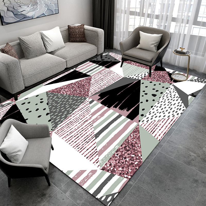 Blue and Yellow Bedroom Rug Modern Color Block Stripe Pattern Area Rug Polyester Stain-Resistant Carpet
