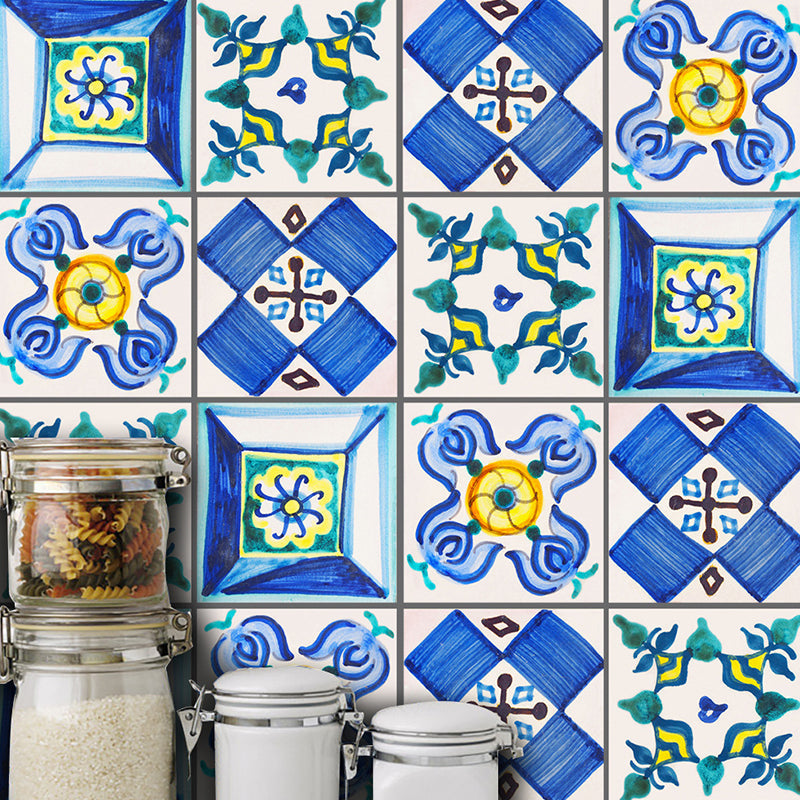 Blue Bohemia Stick Wallpaper Panels 50 Pieces 6' x 6" Hand-Print Flower Wall Art for Home