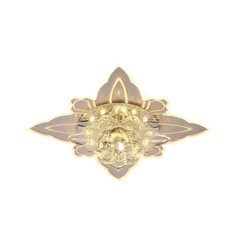 Clear Crystal Floral Ceiling Lamp Contemporary Passage LED Flush-Mount Light Fixture