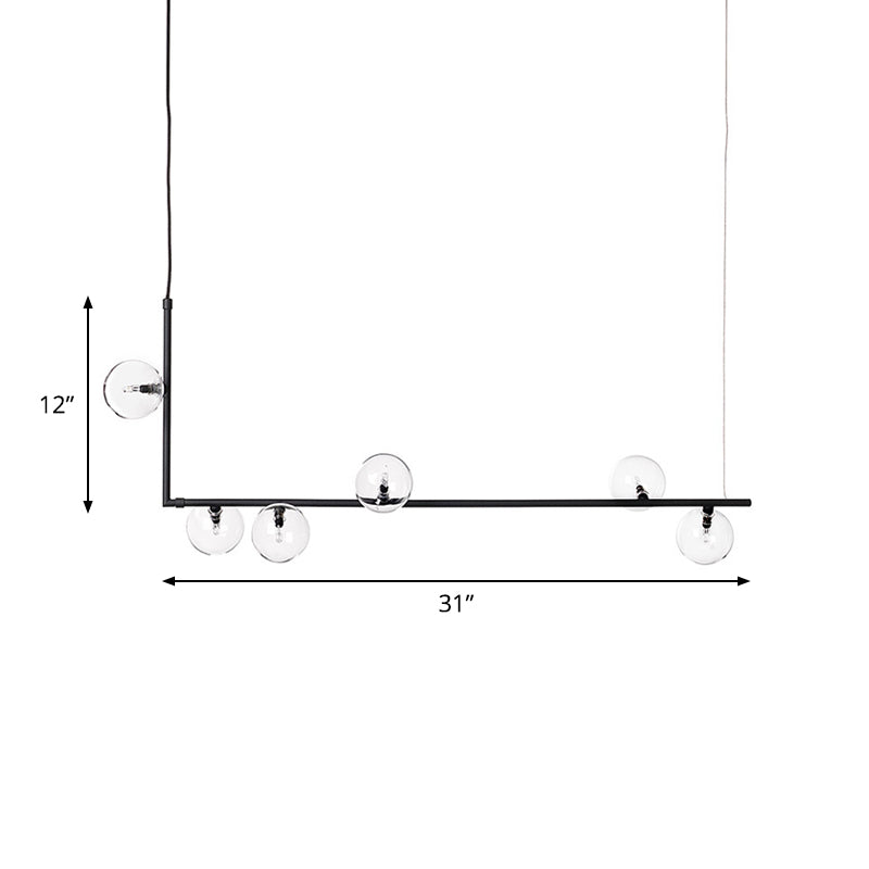 Clear Glass Globe Island Pendant Modernist 6 Bulbs Hanging Lamp Kit in Black with Right Angled Frame, Warm/White Light Clearhalo 'Ceiling Lights' 'Chandeliers' 'Glass shade' 'Glass' 'Island Lights' Lighting' 1710332