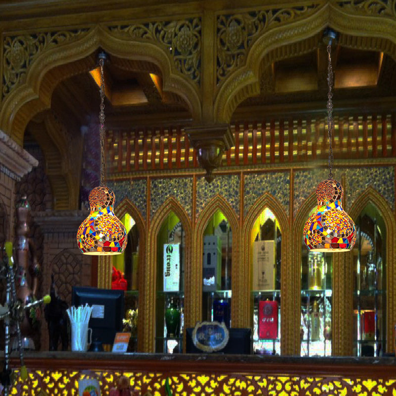 Cut Glass Gourd Hanging Light Fixture Turkish 1 Light Restaurant Ceiling Pendant in Yellow/Orange/Green