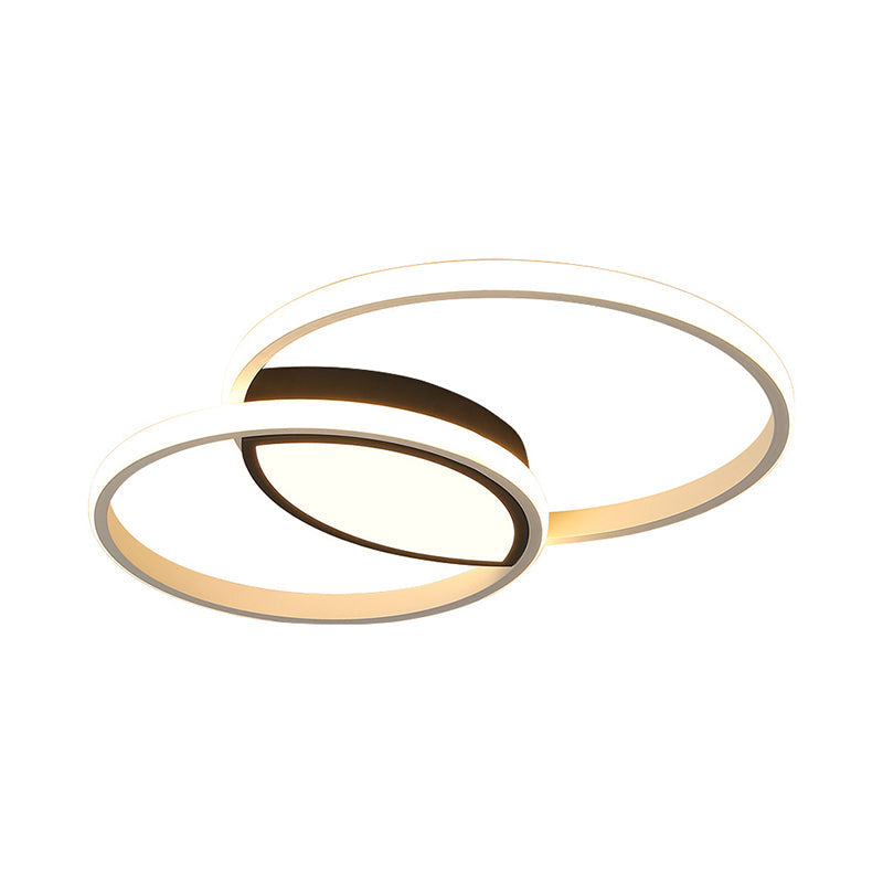 Double Rings Metal Ceiling Mount Light Fixture Modernism Black and White LED Flush Light in Warm/White Light/Remote Control Stepless Dimming, 16"/19.5" Wide Clearhalo 'Ceiling Lights' 'Close To Ceiling Lights' 'Close to ceiling' 'Flush mount' Lighting' 287944