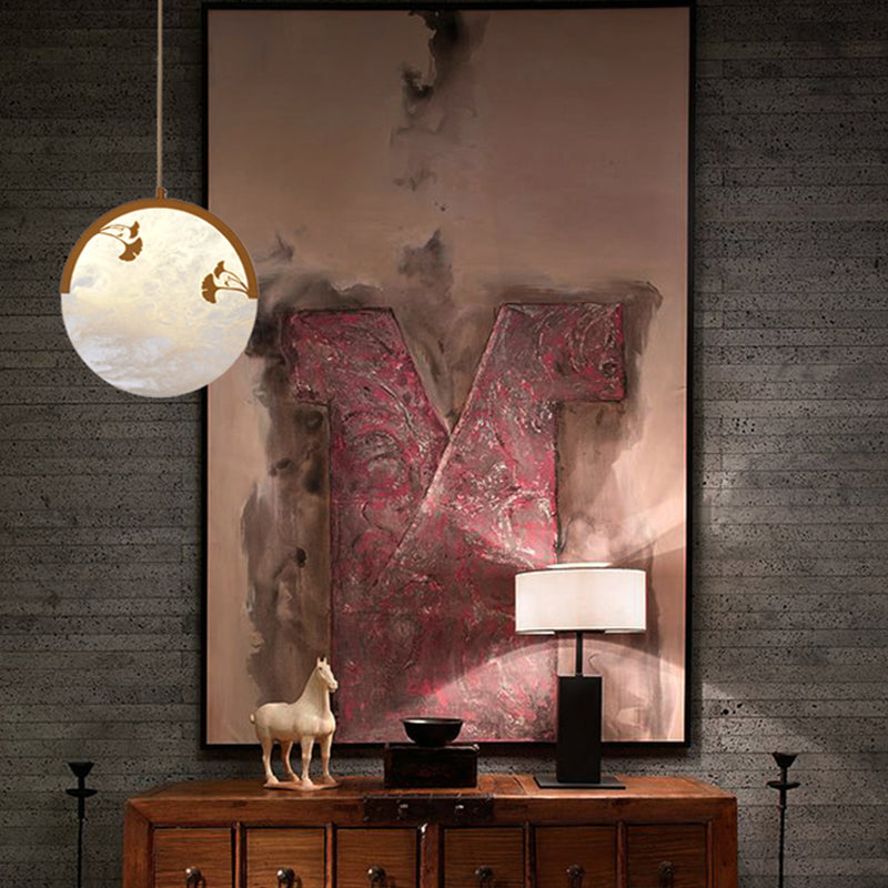 Flower/Leaf Acrylic Hanging Pendant Classic 1 Light Living Room Suspension Light in Gold