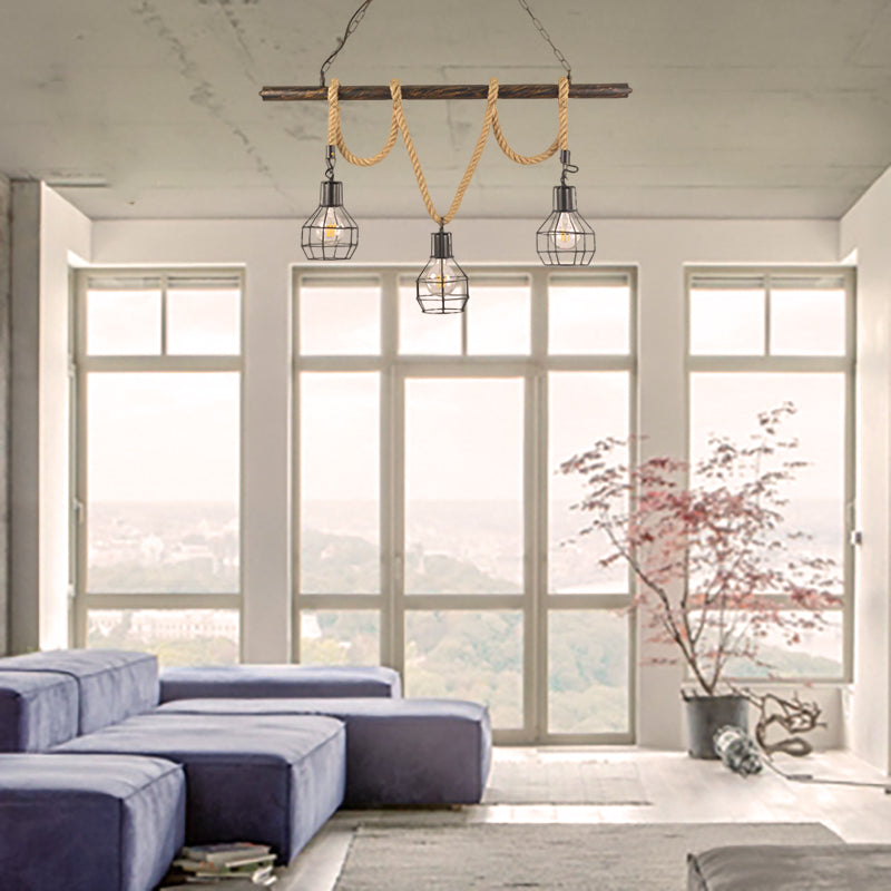 Global/Bottle Restaurant Island Pendant Light Iron 3 Lights Retro Style Black Ceiling Light with Hanging Rope Clearhalo 'Ceiling Lights' 'Island Lights' Lighting' 257590