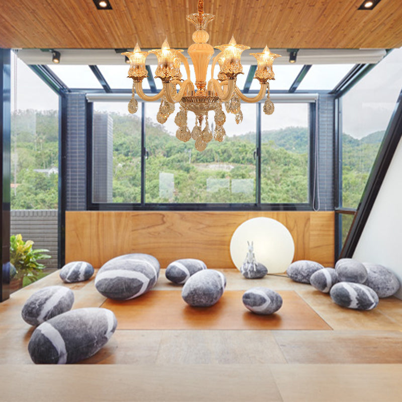 Gold Flower Chandelier Pendant Light Traditional 6/10 Heads Clear K9 Crystal Hanging Lamp for Living Room, 29.5"/35.5" W Clearhalo 'Ceiling Lights' 'Chandeliers' Lighting' options 280558