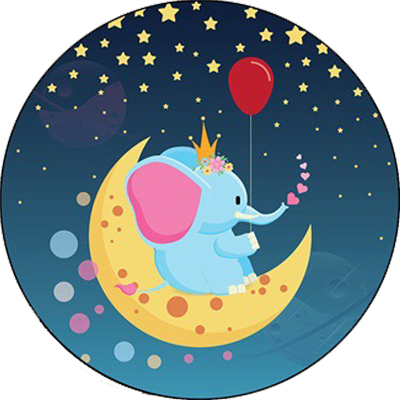 Kids Bedroom Rug in Blue Animal Elephant Rabbit Hedgehog Print Rug Polyester Pet Friendly Area Rug