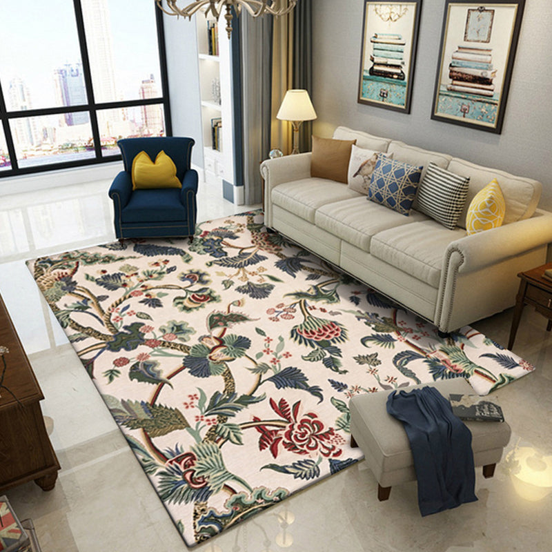 Light Yellow Vintage Rug Polyester Floral and Leaf Pattern Rug Washable Non-Slip Backing Carpet for Living Room